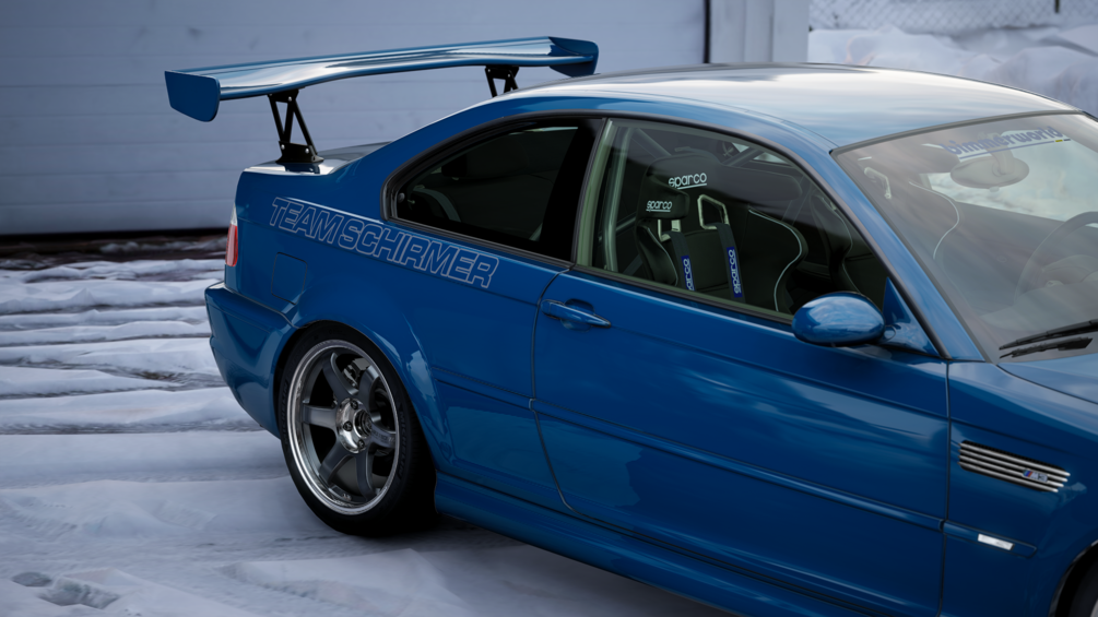 The goal was to make a track inspired E46 M3. Therefore it’s got functional aero, CSL steering rack, coilovers and semi-slicks. Two different engine setups are available: Stroked S54 or S85 swap.
